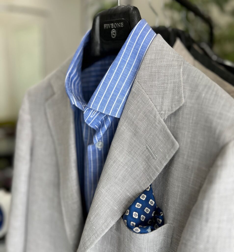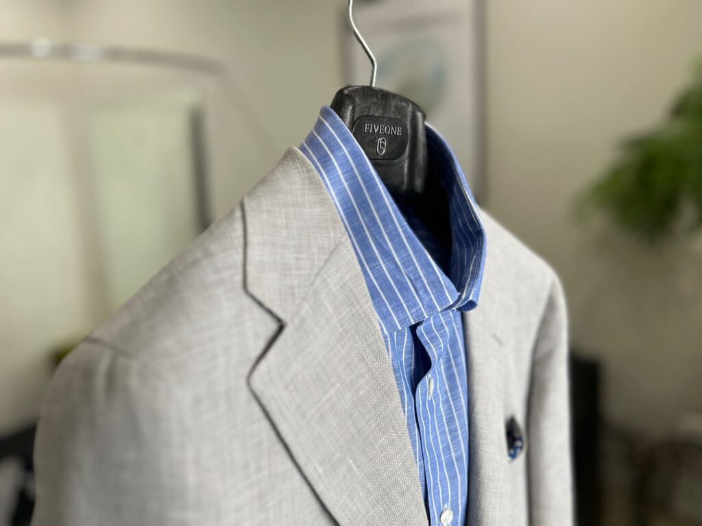 ノータイでも衿の高さが保たれているのが