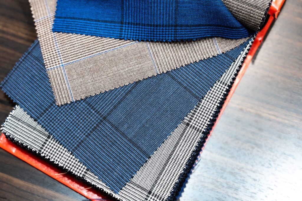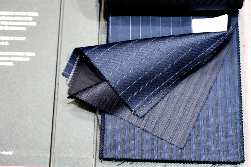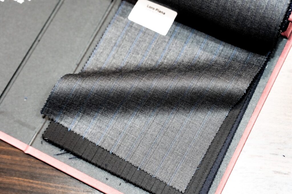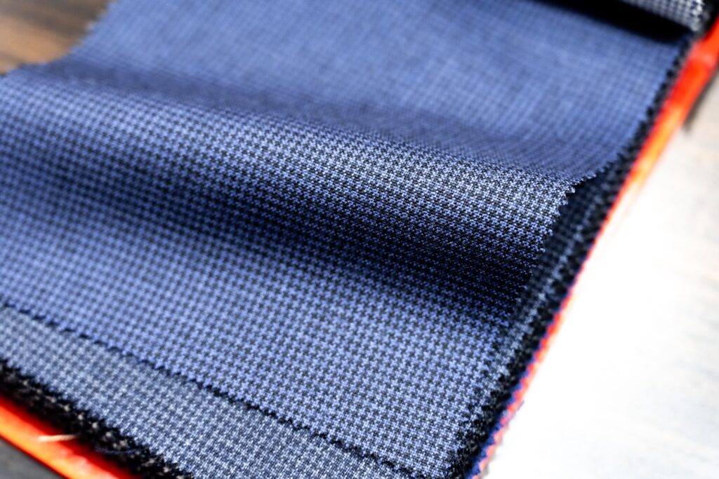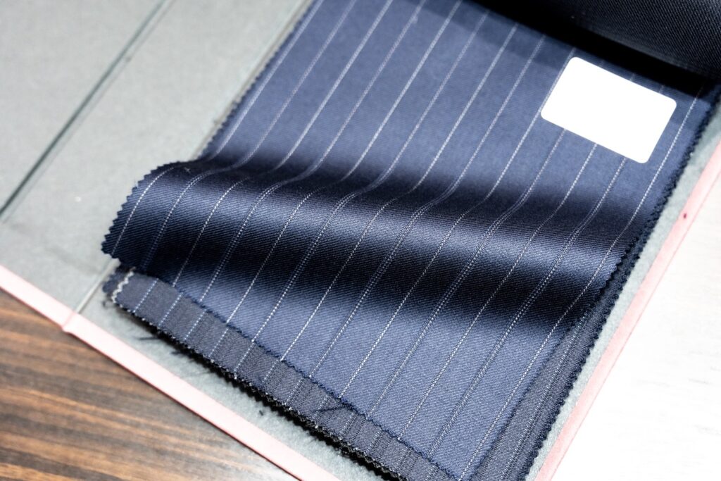 適度なハリコシ、控えめな光沢はブレザーを仕立てるにも最高です。